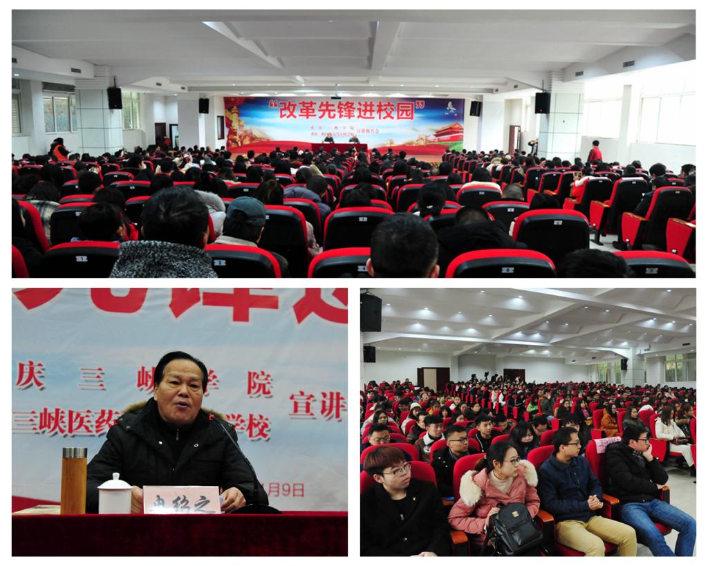 1月9日,在改革开放40周年大会上获得表彰的“改革先锋”冉绍之同志来到重庆三峡学院,向师生们宣讲参加改革开放四十周年大会的真情感受,见证改革开放的心路历程,参与改革开放伟大实践的难忘经历,以及对改革开放未来的美好向往。