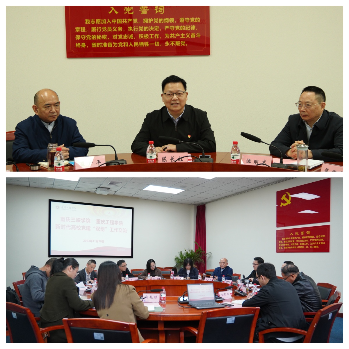 崔广平介绍了我校的基本情况以及新时代党建“双创”工作进展。他表示,重庆工程学院作为“重庆市首批新时代高校党建‘双创’示范高校”,已获批1个“全国高校党建工作标杆院系”和2个“全国高校党建工作样板支部”,推动了党的领导全面加强、基层组织全面过硬和党建质量全面提升,以创新落实新时代党的建设总要求引领学校事业高质量发展,特色明显、成效显著,值得我们认真学习和借鉴,期待在今后工作中进一步加强联系,深化校际交流合作。