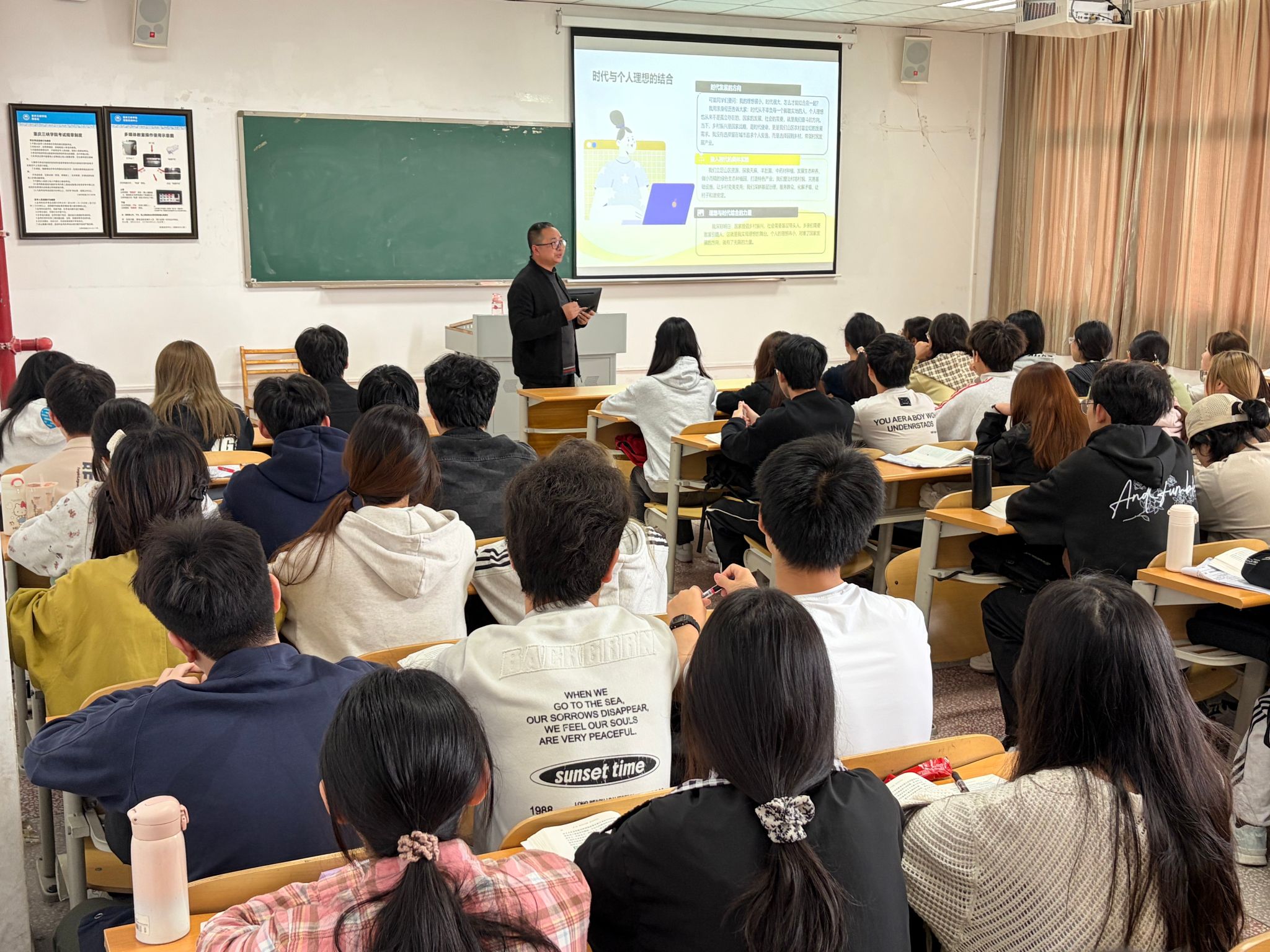 课堂伊始,陈晓芳以“新时代青年如何将个人理想融入民族复兴伟业”为引,结合国家发展重大成就,深入阐释理想信念的深刻内涵。随后,牟方成分享自己扎根山村的初心故事。他讲到,为破解当地农产品滞销难题,他主动学习尝试,开通抖音账号直播带货,至今已累计销售3万多单,销售额突破200万元;还创新推出“线上议事厅+线下服务站”治理模式,切实打通了服务群众的“最后一公里”。牟书记动情地说:“群众的期盼就是我的理想,让乡亲们过上好日子就是最大的价值。”朴实的话语引发全场共鸣。
