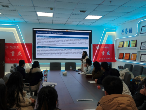 2. “高维世界的神经网络动力学”:毕业于印度理工学院的Baluni Sapna博士也来到了现场,带来了题为《具有时变延迟的超复数神经网络稳定性与同步》的前沿报告。这一触及数学本质与计算前沿的课题,引发了在场数学与计算机背景师生的极大兴趣,大家围绕“超复数系统的物理意义”、“延迟对网络同步能力的具体影响”等进行了深入切磋。