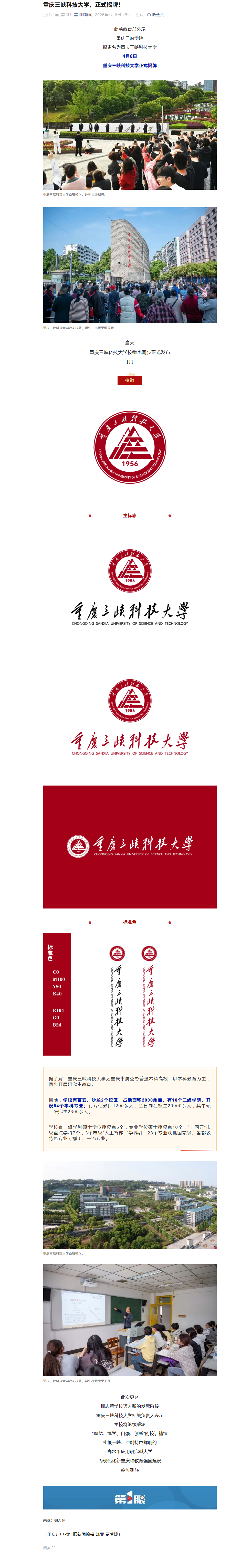 2026年4月8日《新华网》:重庆三峡科技大学正式揭牌成立