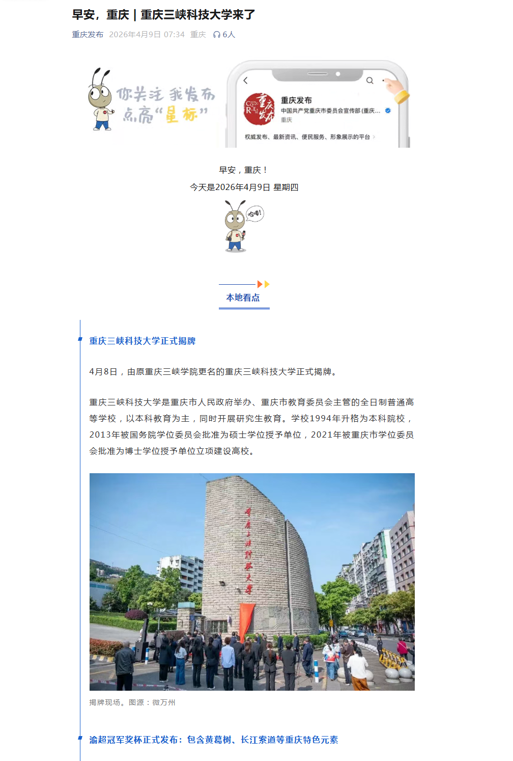 上一条:2026年4月9日《重庆日报 数字报》:重庆三峡科技大学揭牌