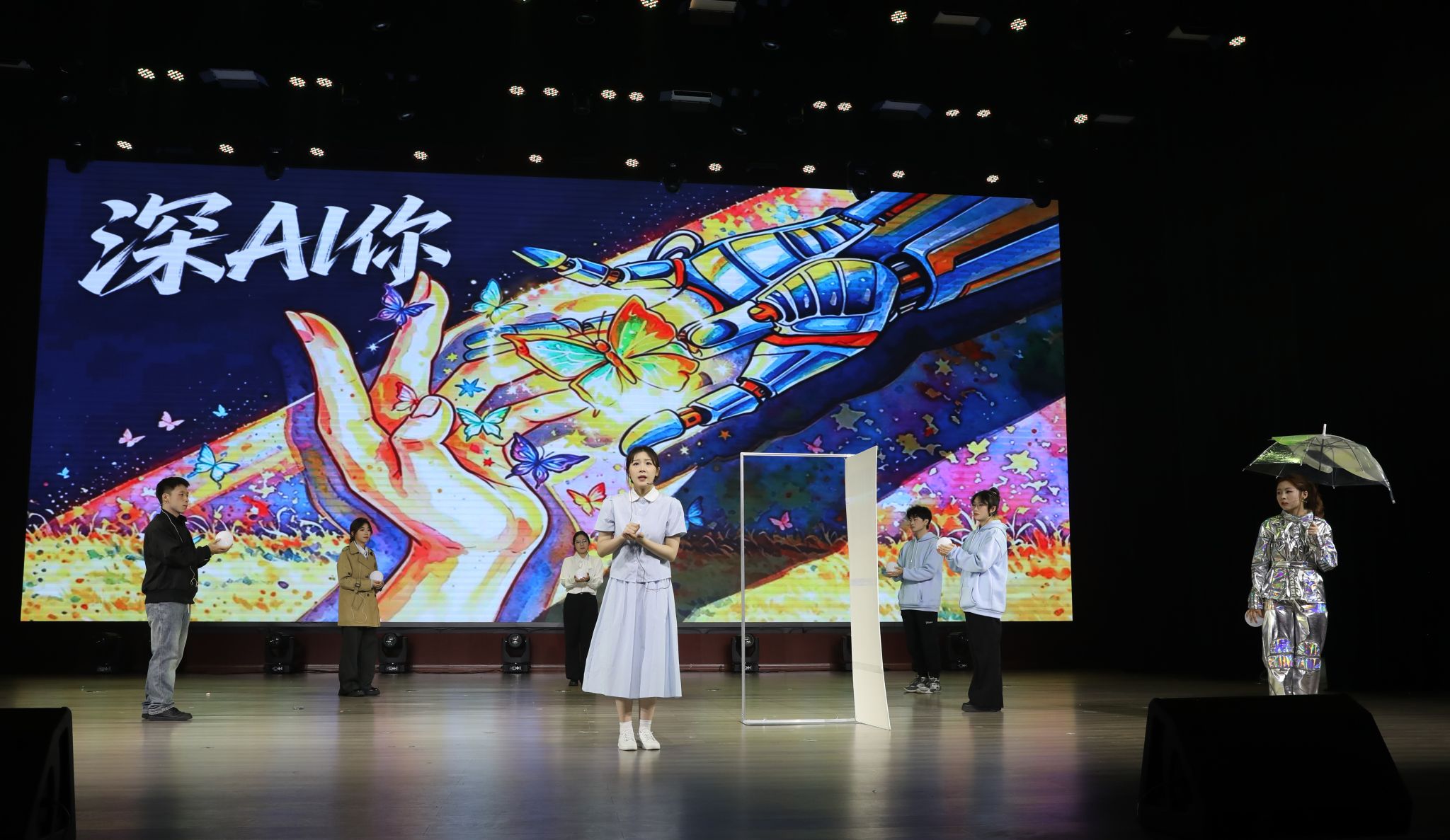当天,从初赛中脱颖而出的6支代表队,紧紧围绕自我认知、学业压力、人际关系、AI依赖、家庭期待等大学生真实心理议题,聚焦朋辈互助、亲情沟通、突破自我、向阳成长等核心内容,将专业心理知识巧妙融入鲜活剧情,将内心冲突、情感纠葛与蜕变成长生动呈现于舞台,让现场观众在共鸣中感受情绪、反思自我、启迪心灵。
